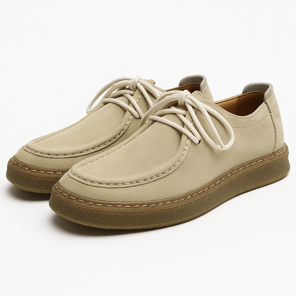 Soft cow-suede gives the Stoneway Crepe that broken in look from day one, with clean stitching that keeps it sharp. The lace up front and low profile sit neatly under cuffed denim or relaxed trousers, while the rubber sole adds grip without bulk. It’s the kind of shoe that makes simple outfits look finished.
